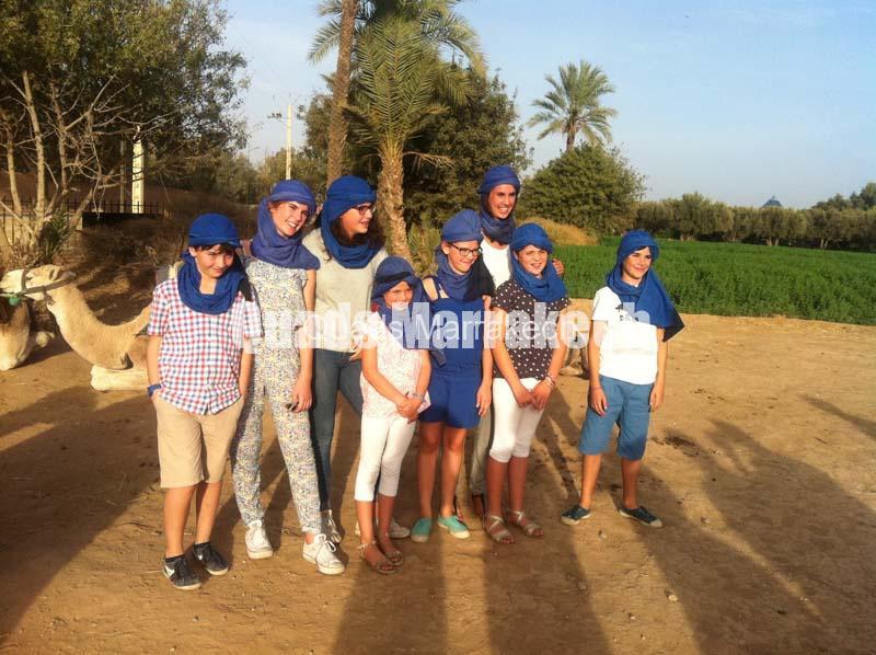 Arrivée sur place, nous vous  habillons en homme du désert (Gandouras) pour commencer votre balade dromadaire Marrakech  dans la palmeraie, seul ou avec enfant sur le dos du Dromadaire.
